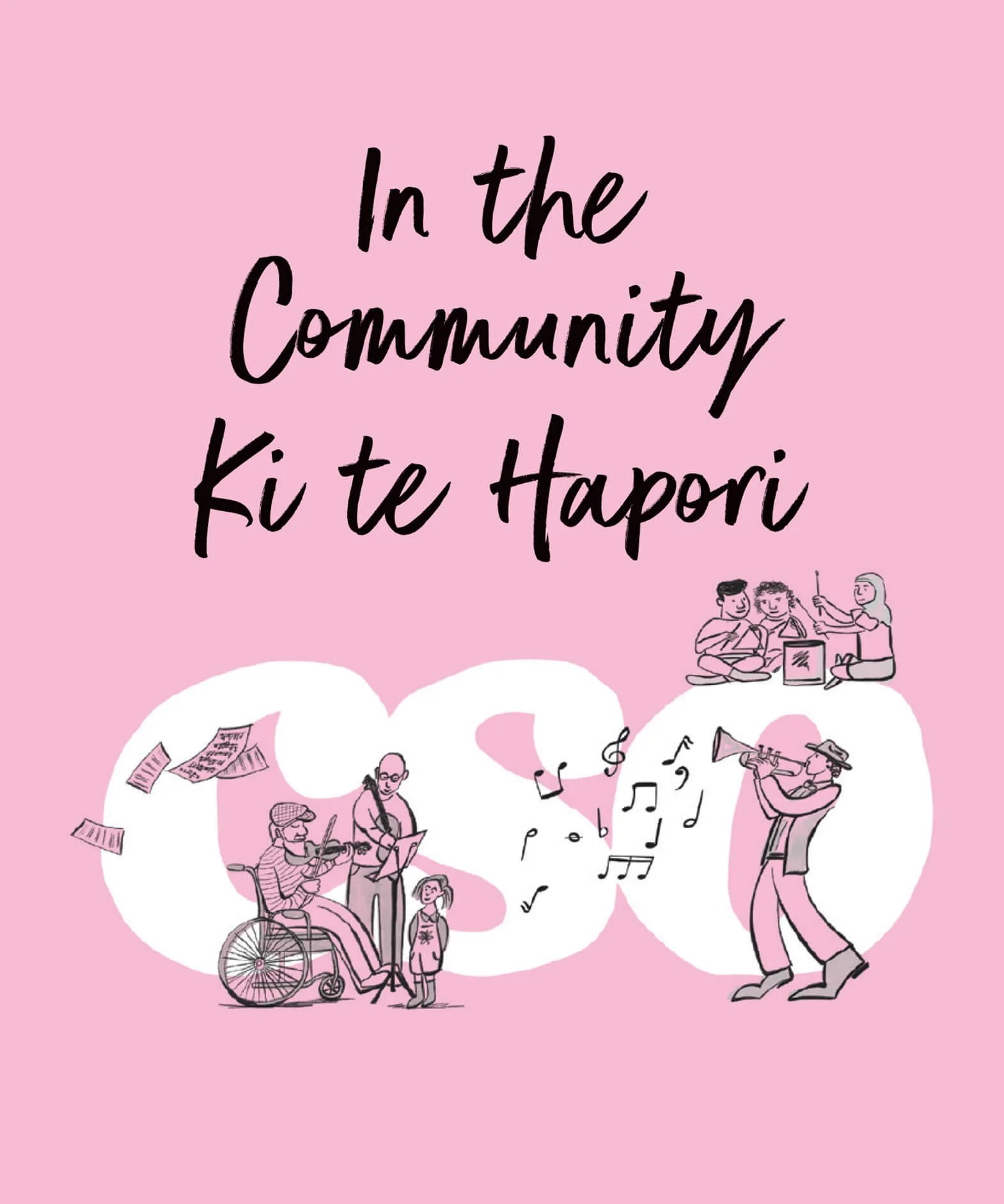 Alongside their very full concert season, CSO are committed to community engagement through their In the Community Ki te Hapori programme. While this aspect of the CSO’s work had always been highlighted in brochures for previous seasons, this year they wanted to place more emphasis by giving the programme it’s own visual identity and more real estate within the brochure and on their website. We created an identity that was bold, colourful and playful; incorporating loose-style illustrations and handwritten type to reflect the community focus.